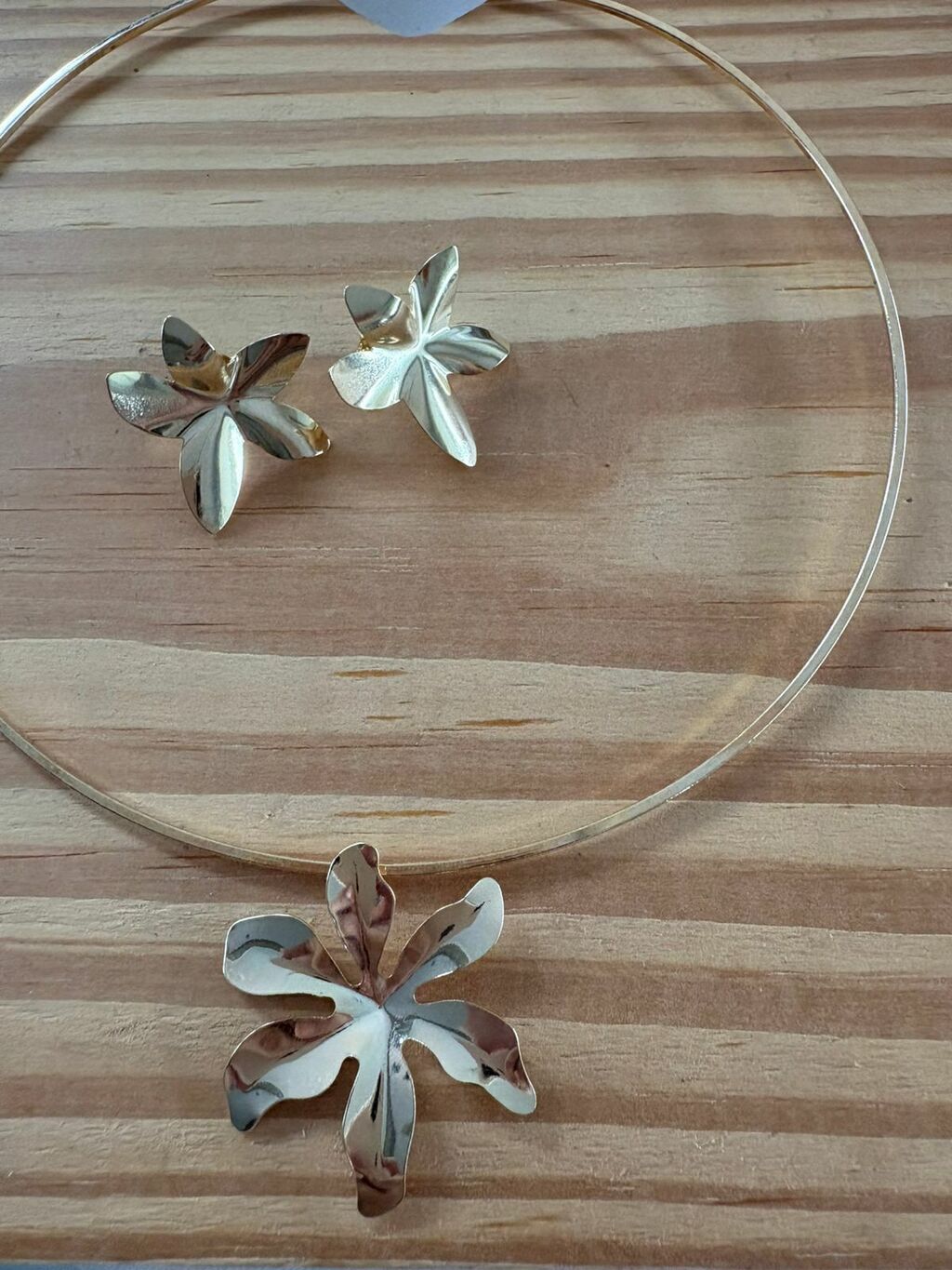 Realce sua elegância com o Conjunto Colar Aro com Pingente e Brinco em Metal Dourado. Esta peça sofisticada combina um colar aro delicado com um pingente que irradia charme, acompanhado de brincos que complementam perfeitamente o visual.